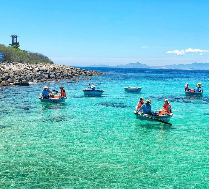 - Cano thăm quan đảo theo chương trình tại Nha Trang.